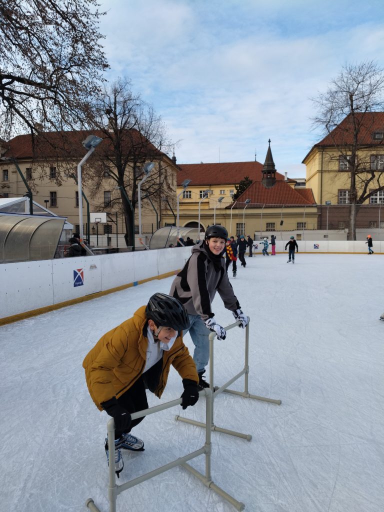 V úterý před blížícím se pololetním vysvědčením si žáci 6.B užili zimní počasí na ledové ploše. V areálu Na Františku, který je hojně navštěvován i dalšími pražskými školami, se naši žáci rozhodně neztratili. I na omezeném prostoru 2/3 kluziště procvičili své bruslařské zkušenosti každý dle své úrovně – objevily se i piruety, projíždění branami a především oblíbená hra „na babu“. Zhodnoceno podtrženo – těšíme se na další a delší bruslení.