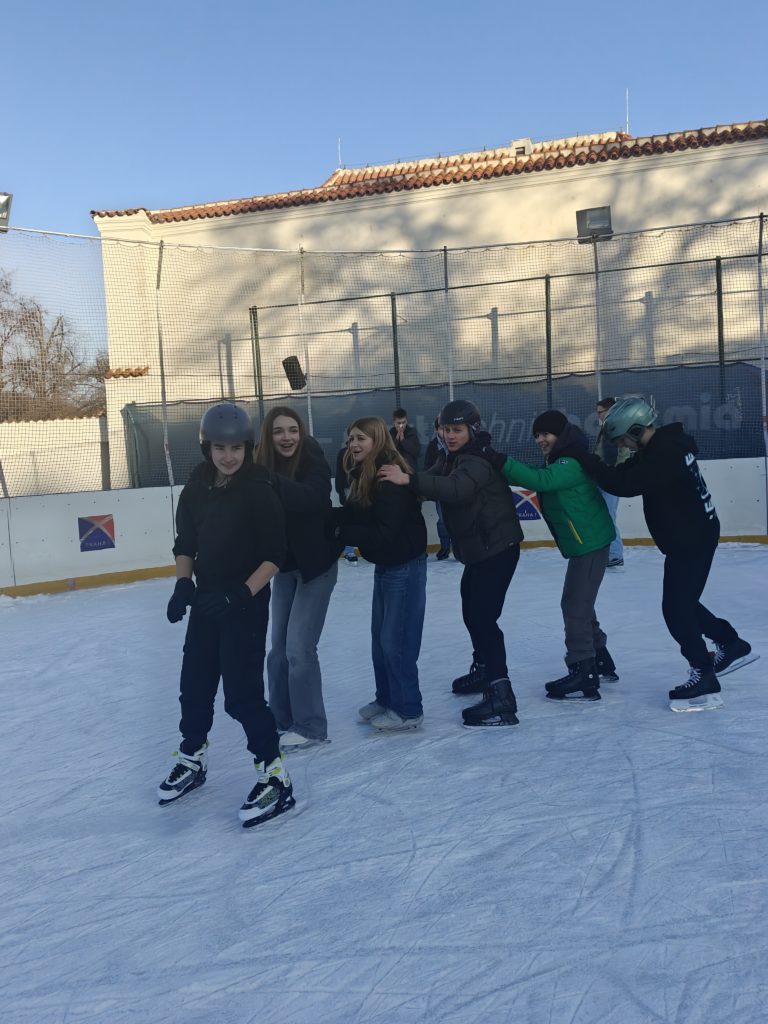 Stejně jako poslední dva roky, i letos obě osmé třídy zavítaly na kluziště Na Františku, aby udělaly něco pro své zdraví. ⛸️ Zpočátku si řada z nás byla nejistá, ale po chvíli si už nikdo ani neuvědomoval, že by stál na ledě – snad jen když se nepodařilo udržet rovnováhu. 🤭 Celé dvě hodiny nám přálo počasí, takže jsme si to opravdu užili.