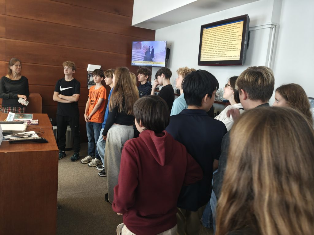 V úterý hned po deváté hodině ranní vyrazili žáci 8.B ze základní školy sv. Voršily na komentovanou prohlídku do České tiskové kanceláře.