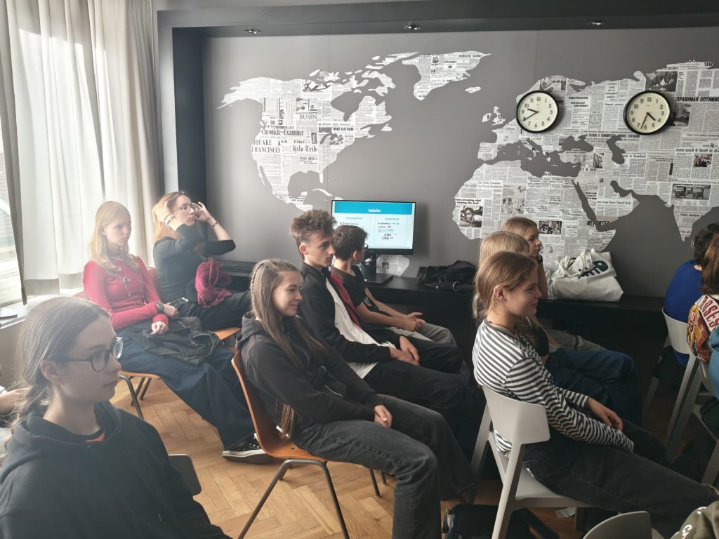 Jakmile tam došli, uvítala je jejich průvodkyně Martina Vašíčková, která je dovedla až do 5. patra, kde začala exkurze prezentací o vzniku, smyslu a současném fungování ČTK.