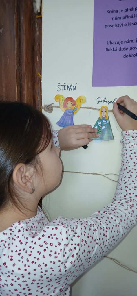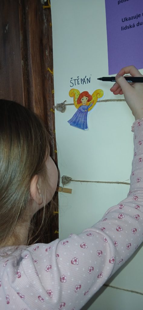 V družině nejen vyrábíme anděly na vánoční trhy, ale začalo také naše společné putování s anděly. Ti nás budou provázet každým dnem, nejen se svým jménem, ale hlavně se svým příběhem. V něm nám ukážou poselství o dobrotě, lásce a naději. Jejich úkolem je např. házet na zem vonící semínka radosti, další anděl pomáhá lidem v nouzi nebo má o nás starost… Postupně bude naše nástěnka zaplňována anděly až do doby, než přiletí celý andělský sbor. Věřím, že se nám společně skrze tyto příběhy podaří připomínat si a uvědomovat to, co je v době adventní to nejdůležitější a připravit se na to, co je opravdu pravou podstatou Vánoc.