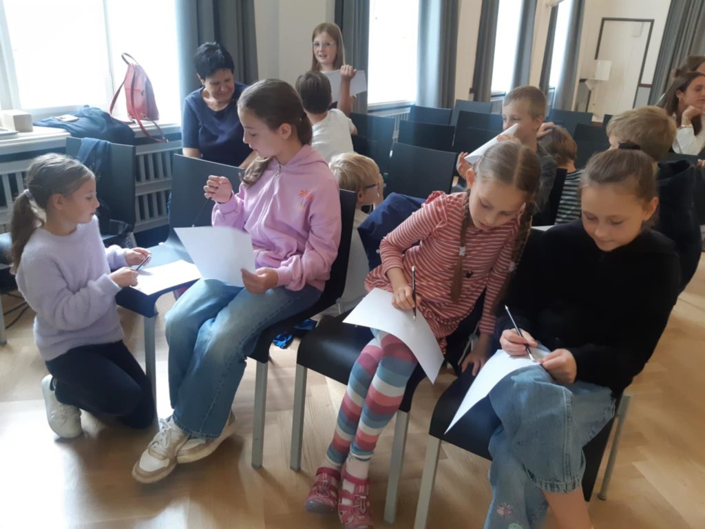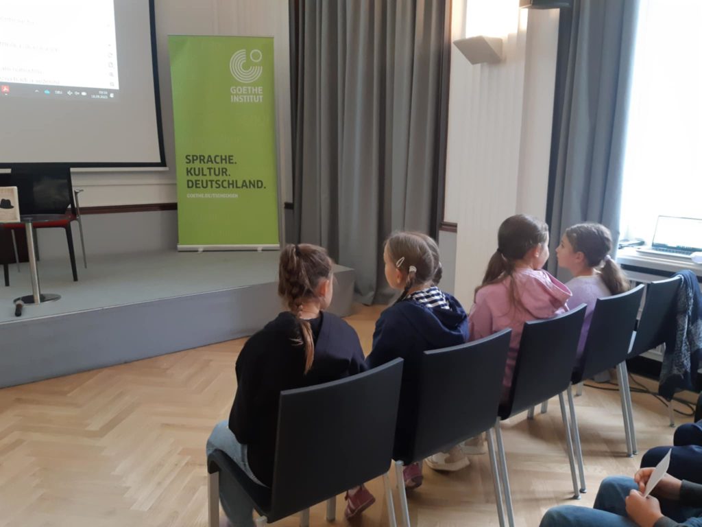 Do Prahy zavítala známá německá spisovatelka Marion Brasch a naše 4.B u toho samozřejmě nechyběla! V Goethe-Institutu si děti poslechly ukázku z knihy v němčině s českým překladem, vyzkoušely si hravé jazykové přesmyčky ze svých jmen a nakonec si odnesly i cenný autogram.