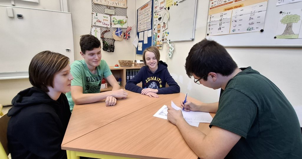 Jak se již stalo milým zvykem v adventní čas, navštívily tři různé skupiny amerických studentů v programu Karlovi univerzity CIEE naši školu. Studenti se od srpna učili česky a teď si chtěli ověřit své dovednosti v reálné komunikaci. Tentokrát byly šťastlivci třídy 8.A, 9.A a polovina 7.A. Naši žáci byli nadšeni, že si mohou procvičit angličtinu. Bylo pro ně trochu obtížné 20 minut procvičovat češtinu. Angličtina se zdá jako pohotovější pro komunikaci. Jsme moc rádi, že tuto akci na naší škole máme.