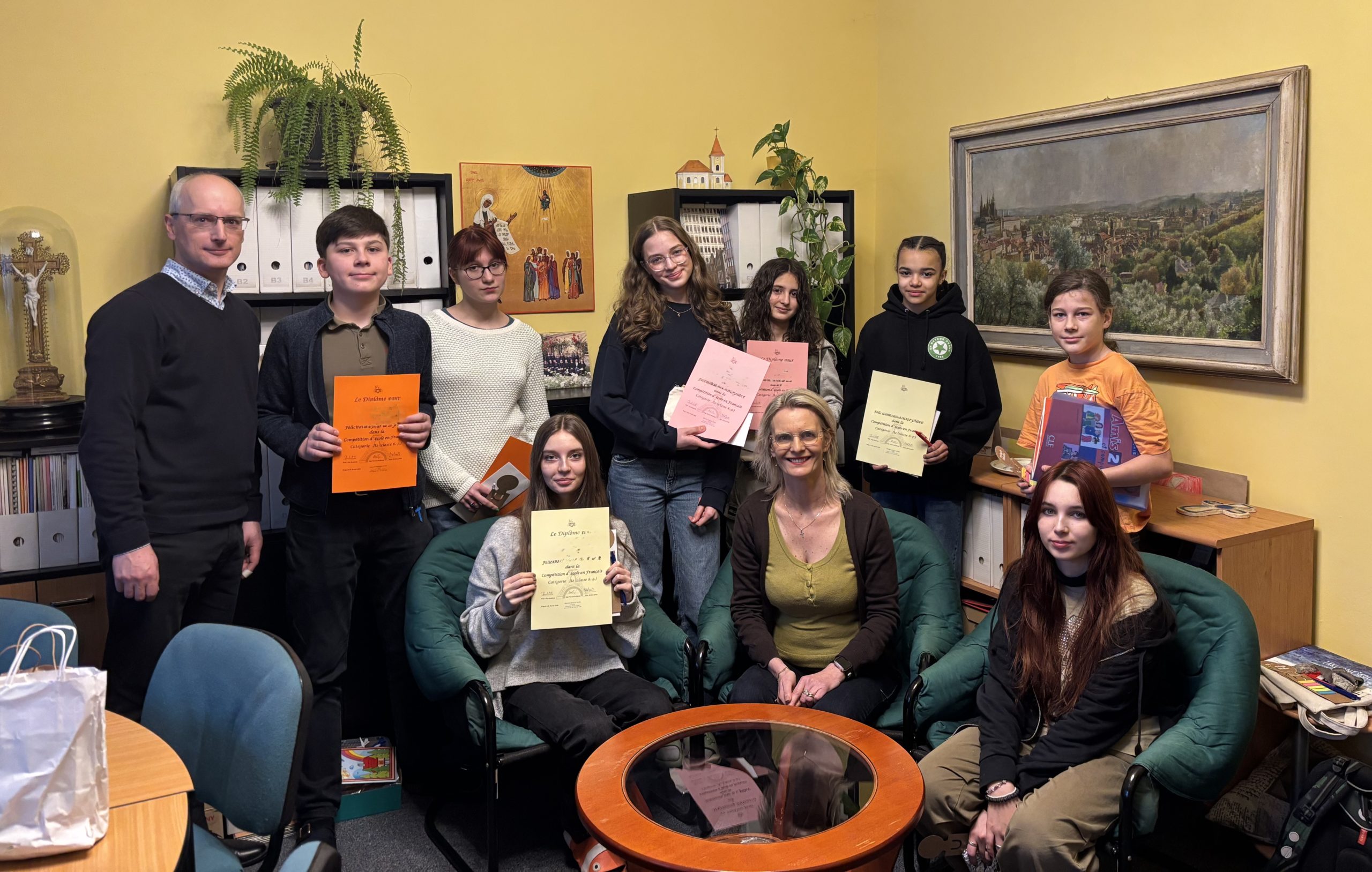 Dne 4. února se konala každoroční konverzační soutěž ve francouzštině v kategorii A2. Děti byly rozděleny do dvou věkových kategorií. Ve skupině 6.-7. třída se umístila na 3. místě Yasmína Benge (6.A), na 2. místě Jan Heller (6.B) a na 1. místě Eliška Suchlová ze 7.A. Ve skupině 8.-9. třída se umístila na 3. místě Ema Gondeková (9.B), na 2. místě Ester Přibylová (8.A) a na 1. místě Magdalena Štefanová z 9.B. Všem gratulujeme a opět se těšíme na příští rok!