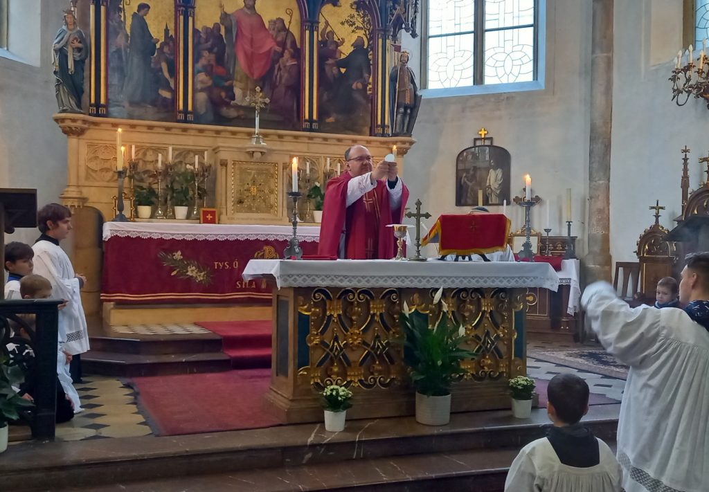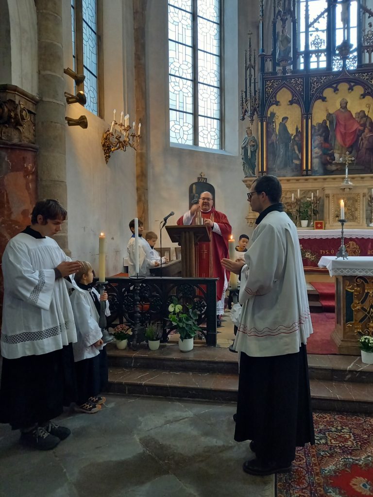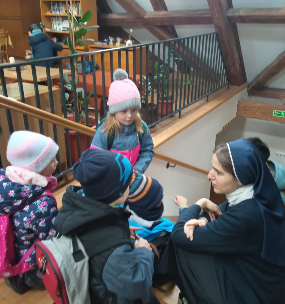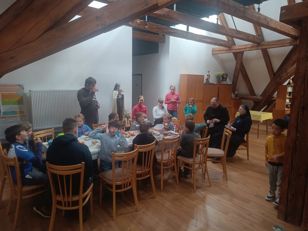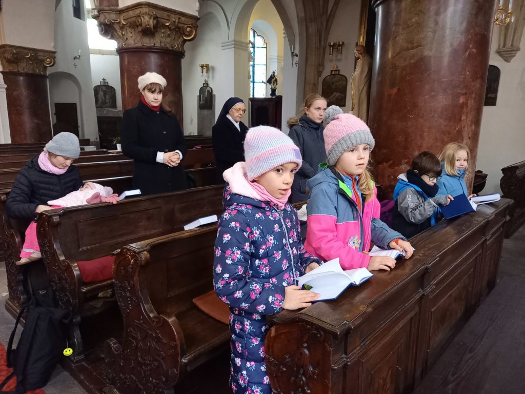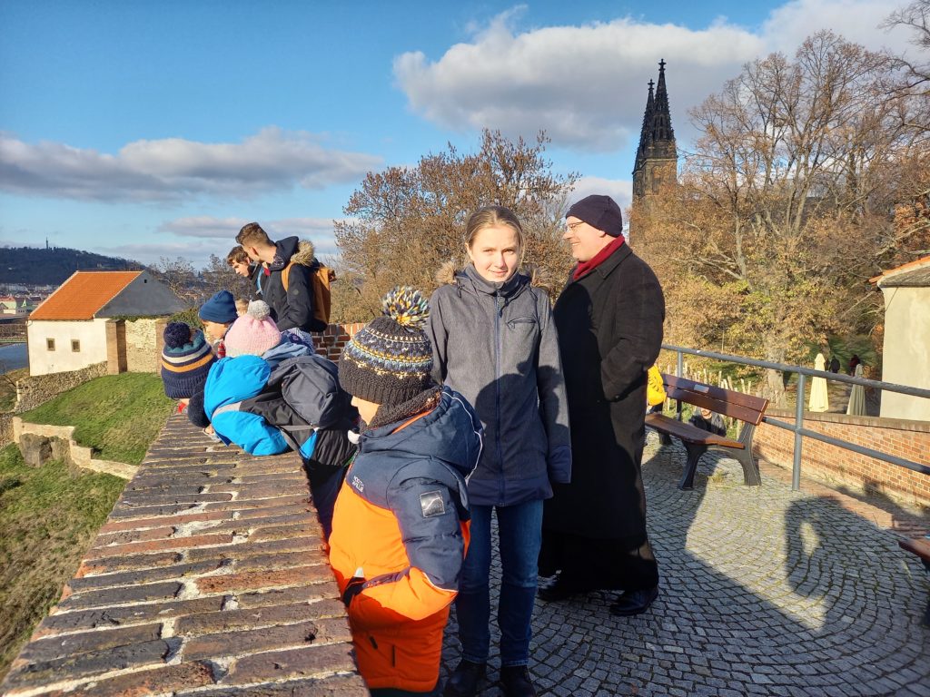 Sobotní výlet s dětmi jsme zahájili mší sv. v kostele sv. Vojtěcha ke cti sv. Cecílie. Po ní jsme navštívili náš klášter. Během prohlídky jsme měli prostor ke vzájemnému sdílení, občerstvení a setkání jsme zakončili v kapli společnou modlitbou. Následně jsme šli na Vyšehrad, kde jsme se pomodlili u hrobů našich sester i pana školníka Martina Lenfelda a pokračovali jsme kolem hradeb na oblíbené dětské hřiště. Děti hrály různé hry a byly radostné. Všichni jsme byli spokojeni natolik, že jsme zapomněli udělat fotografii z hřiště. Před odchodem ke škole jsme ještě krátce navštívili baziliku sv. Petra a Pavla. Jsme rádi, že počasí vyšlo a svítilo nám krásně sluníčko.