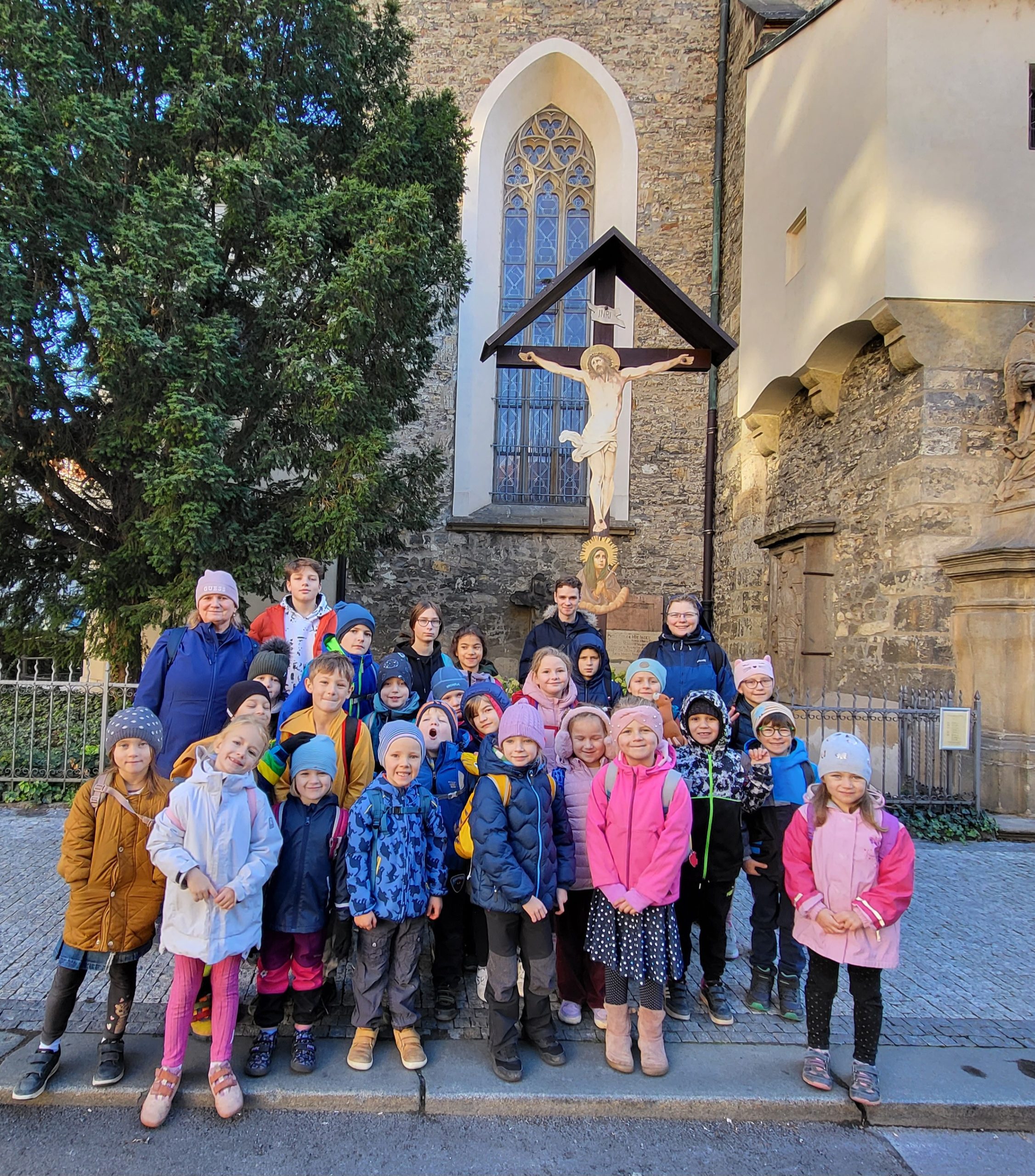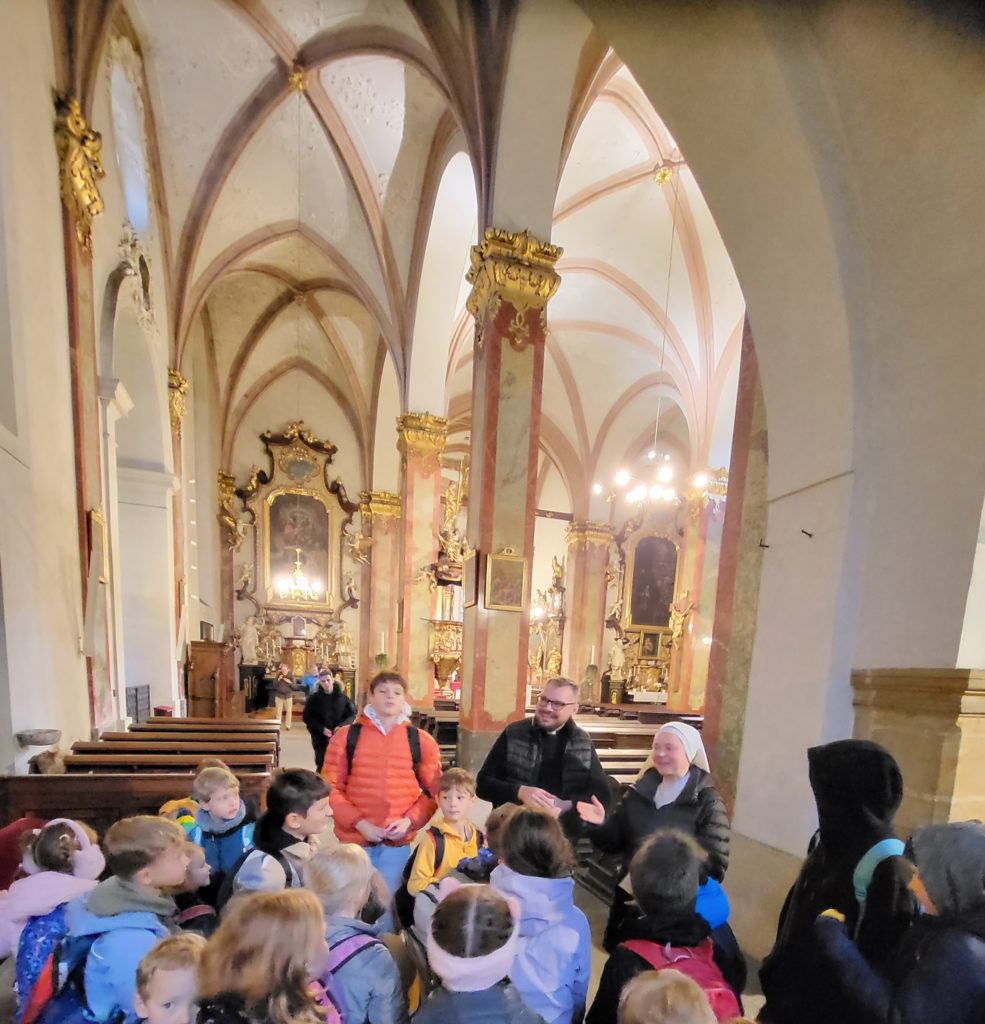 V sobotu 18. října se vydala skupinka 25 žáků školy spolu se S. Veronikou, paní učitelkou Stáňou a S. Alžbětou na pátý výlet v rámci projektu Grantys – „Poznáváme poutní místa Čech a Moravy V.“ Po společné modlitbě jsme se vydali pěšky do kostela sv. Jindřicha a Kunhuty, kde jsme slavili mši svatou. P. Zoltán Balga nás po mši provedl kostelem a seznámil nás s jeho zajímavou historií. Na místní faře jsme se nasvačili a vydali se směr Praha 7, kde nás čekala návštěva Mořského světa. Pouť jsme zakončili opět u naší školy společnou modlitbou a poděkováním za krásně prožitý den.