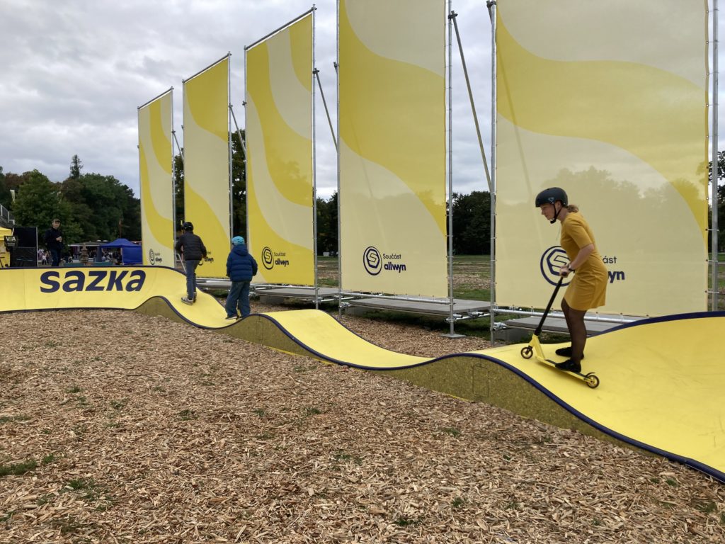 Velkým zážitkem byl ikonický MRAK od designéra Maxima Velčovského, který se stal, dle slov autora, symbolem hravé představivosti a svobody pohybu. Odvážní si mohli vyzkoušet limitovanou designerskou edici skateboardů vyrobených z recyklovaných stíracích losů.