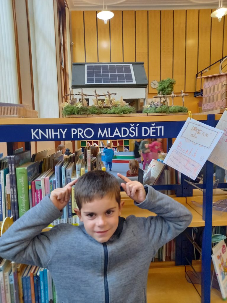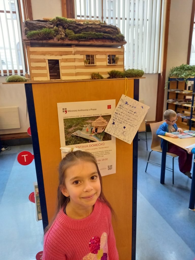 Ani nevlídné počasí nás neodradí od odpolední procházky. S dětmi jsme se vydaly do Ústřední knihovny v Praze na výstavu domečků, které tvořily žáci 3. třídy ze školy v Jinonicích v rámci projektu „Stavba domu“. Každý domeček měl kartičku s odůvodněním stavby daného domu a popsaným postupem při stavbě. Děti si vybraly domeček, který se jim nejvíce líbil, zjistily o něm informace, představily ho a následně jsem je s ním vyfotila. Také se děti učily vybrat si knihu za pomoci knižního katalogu v počítači. Radost z nalezení chtěné knihy byla veliká.
